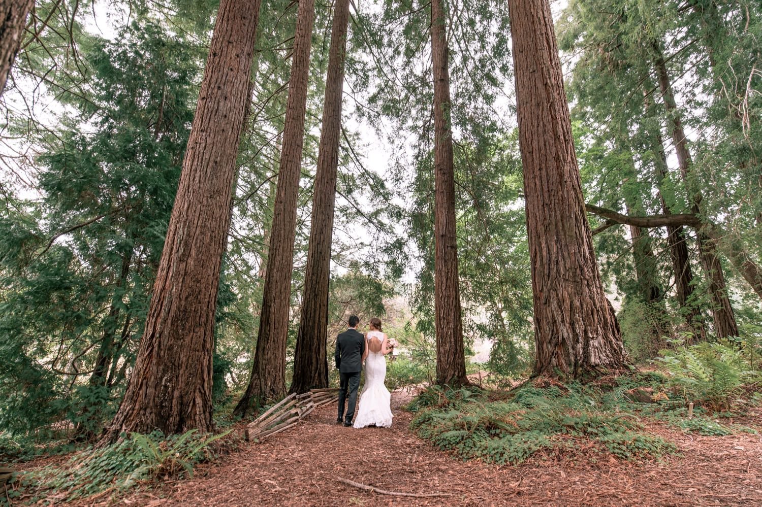 Every trail we took was surrounded with beautiful green tendrils and the burnt siennas of redwood bark. Providentially, it seemed the bride was being showered with blessing after blessing as she was graced by hummingbirds, wooded-butterflies, and even April showers (which, especially on a wedding day, is a sign of blessing). Despite the rain, the couple was up for the romance at any cost and welcomed the open heavens with eagerness.